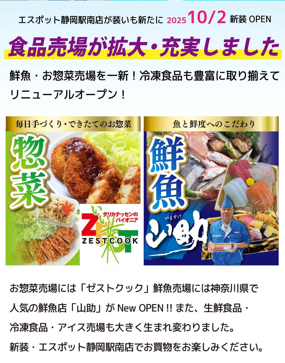 エスポット静岡駅南店、食品売場は大リニューアルしてグランドオープン!