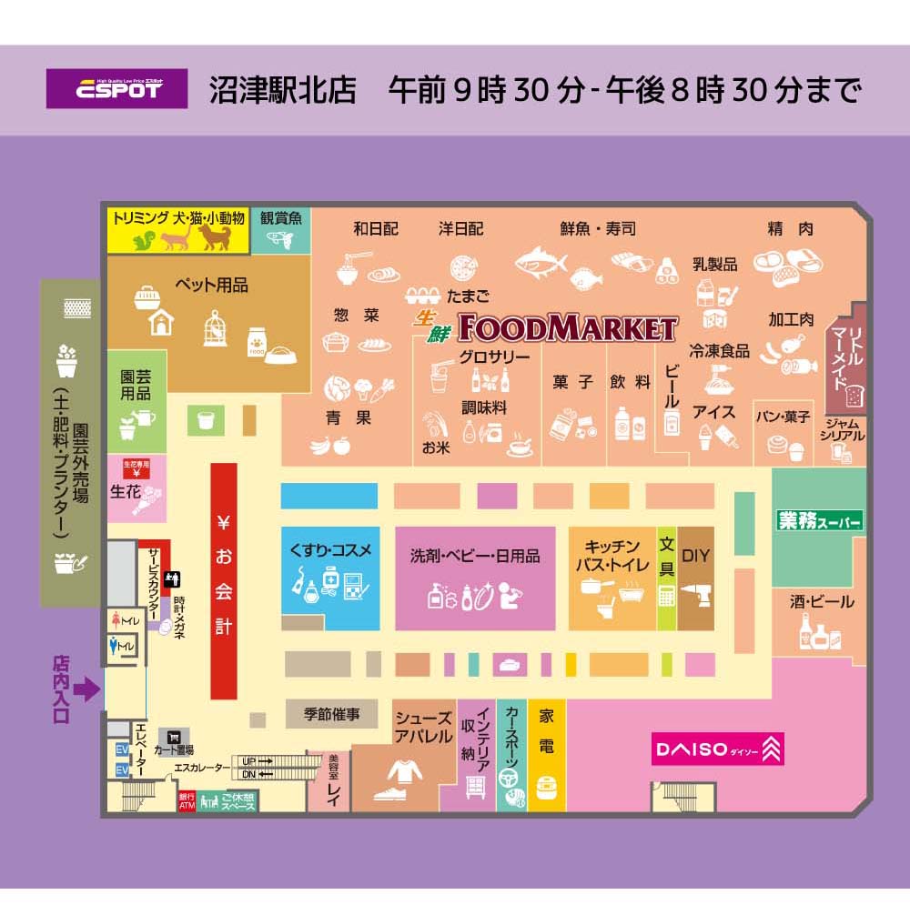食品売場にお惣菜の「ゼストクック」鮮魚に神奈川県で人気の「山助」、そして同フロアに「ダイソー」もOPENいたしました!お買物しやすくなった沼津駅北店にぜひお越しください。
